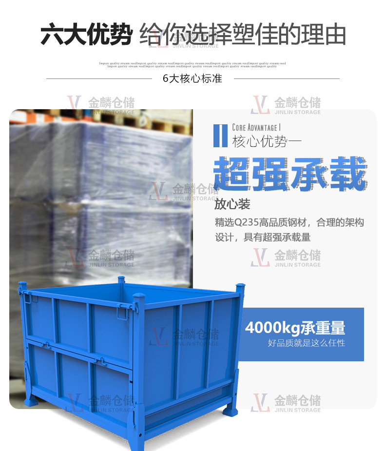 2.特殊腳部結(jié)構(gòu),可使鐵箱自身堆高穩(wěn)定