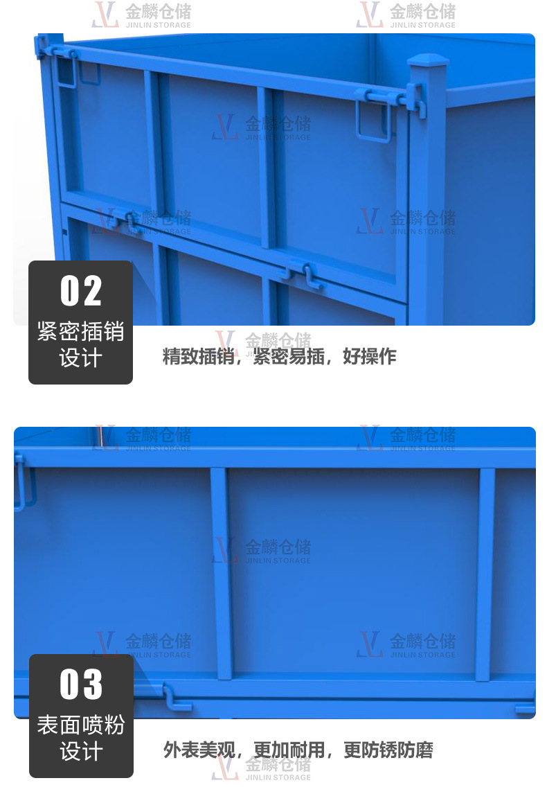 5.金屬輔強(qiáng)結(jié)構(gòu)保證鐵箱折疊后相互之間穩(wěn)定的堆垛
